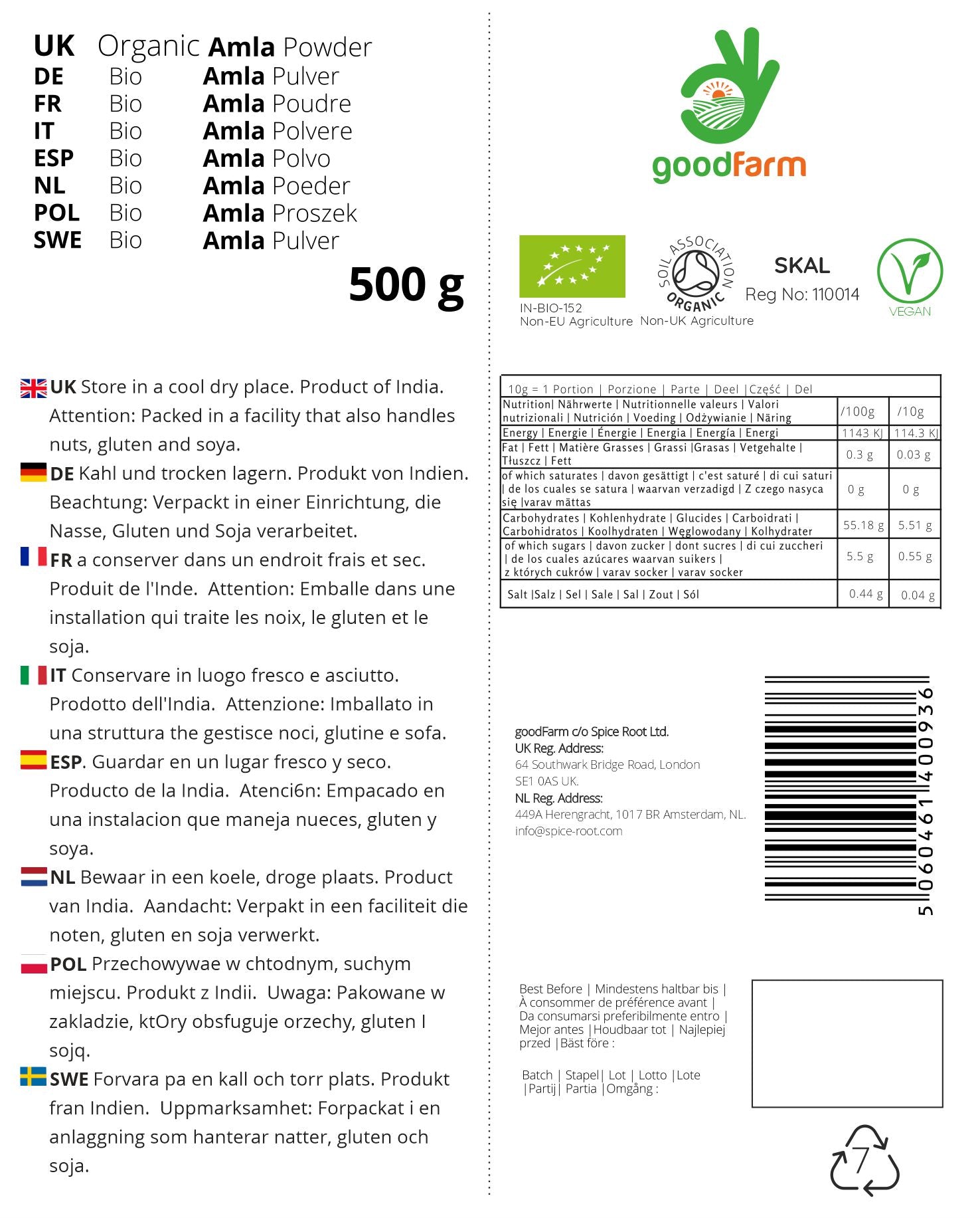 - β 100% ORGANIC: Certified organic Amla Powder 1000g (Indian Gooseberry powder). Premium quality, organic certified by Soil Association UK, adhering to the highest organic standards.