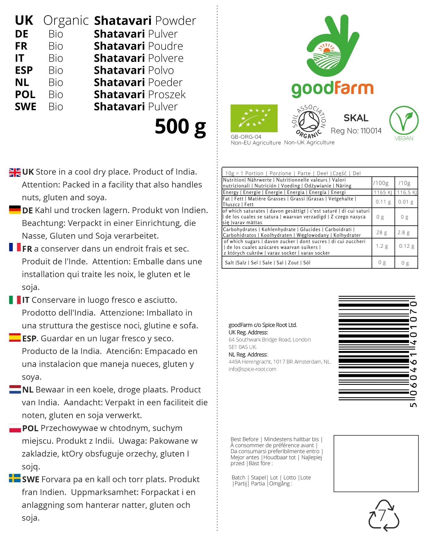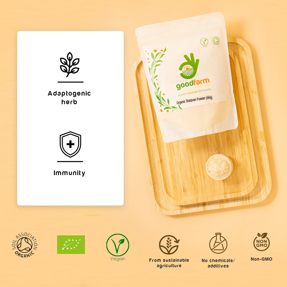 - β 100% ORGANIC: Ethically sourced, certified organic Shatavari Powder 500g (Asparagus racemosus). Certified organic by Soil Association adhering to highest organic standards.